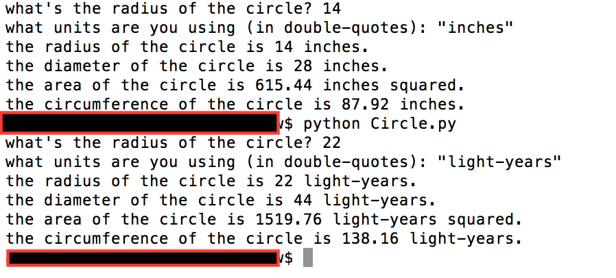 In other words, their programs would tell you what the results of the calculations were, but wouldn’t show what each printed variable result was.   If you didn’t know that the program was going to print in the order of radius, diameter, area, and circumference, you wouldn’t get a sense of what the results meant.